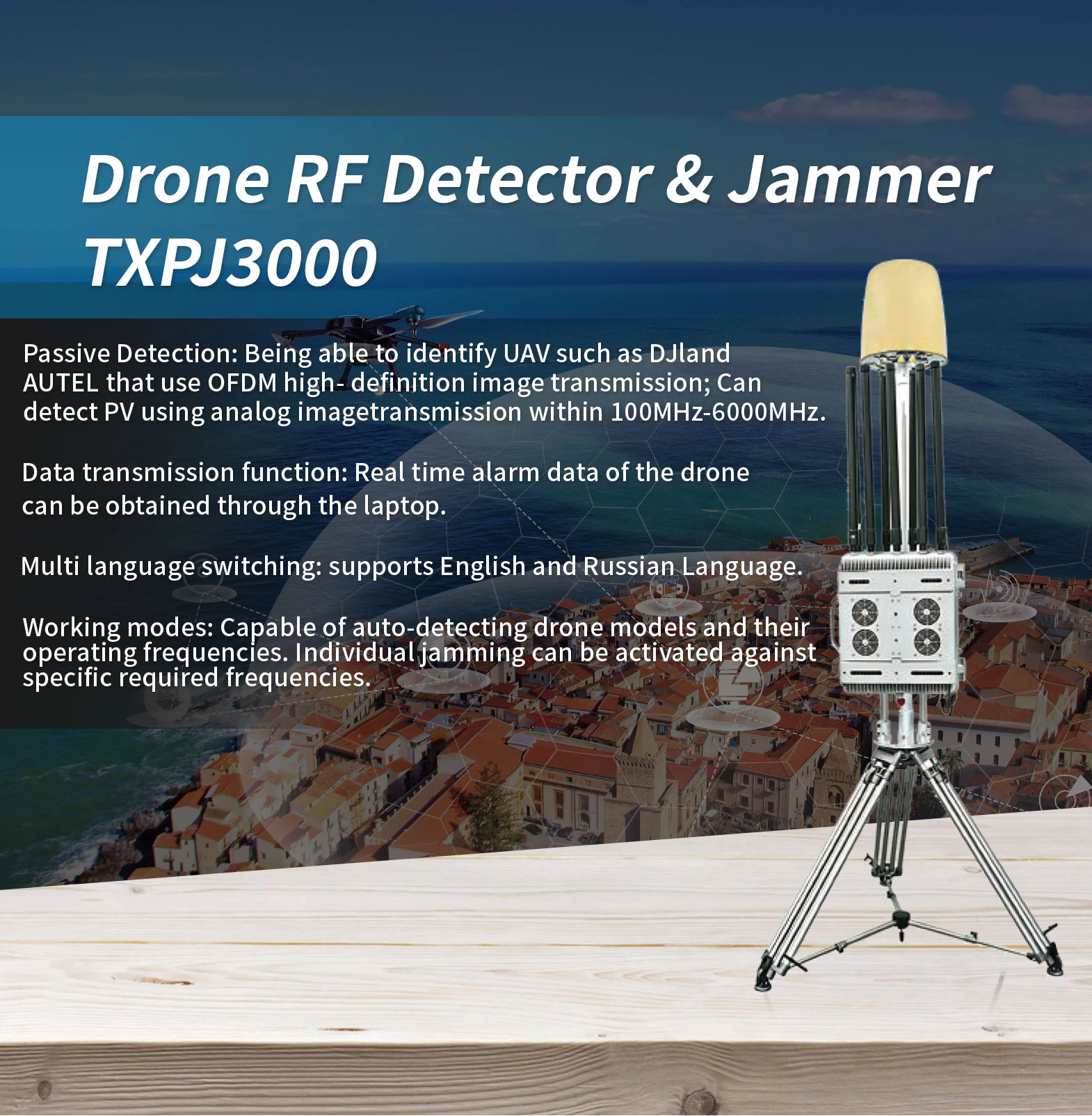The UAV detector adopts low-power design and highly integrated design, and is capable of detectingmainstream rotary wing drones such as DJl and AUTEL that use OFDM high-definition image transmission, as well as various DIY crossings that use analog image transmission signals. The device adopts dual antennasand multi- channel simultaneous scanning, which has the characteristics of fast detection speed, high detectionsensi- tivity, long detection distance, low false alarm rate, strong scal- ability, and easy use.(Optional: GPS Spoofing)
